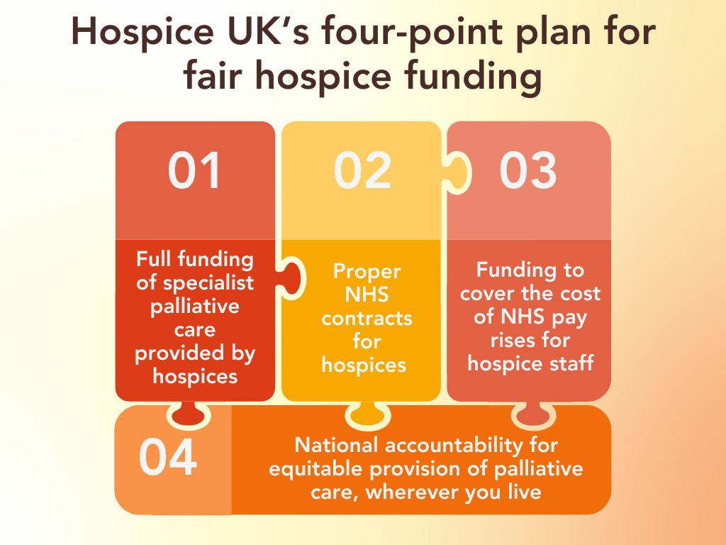 From October onwards, we will be calling for four key reforms to stem the wave of cutbacks to hospice services we have seen in the past two years.